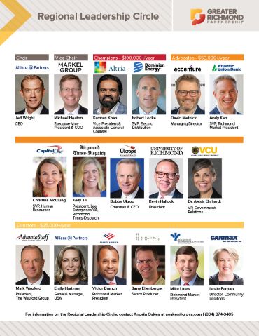 The Regional Leadership Circle, consisting of GRP’s top investors, serves as an advisory council for the GRP Board of Directors. This exclusive group is limited to the most senior-level executives among GRP’s private sector investors who contribute a minimum of $25,000 annually.