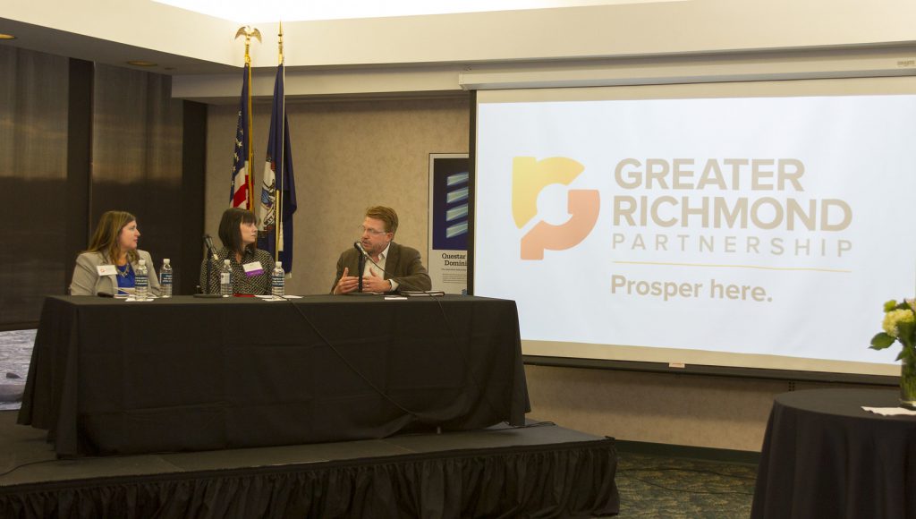 The Greater Richmond Partnership held its quarterly Investor Forum at the Dominion Energy Tredegar building. The forum’s subject addressed economic development marketing and our panelists included Lori Melancon, Vice President of Marketing and Promotions from Virginia Economic Development Partnership, Kelly O’Keefe, Professor of creative brand management at the VCU Brandcenter, and Jennifer Wakefield, Senior Vice President of the Greater Richmond Partnership.