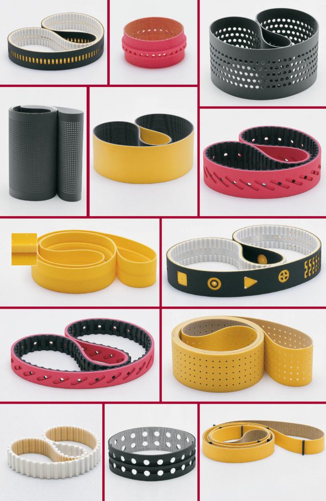 Esband belts offer extreme design flexibility since they are available in many carcass materials and coatings, and in any width specified. In addition, customers can have belts custom machined with perforations, self-tracking guides, vacuum slots and transport pockets.